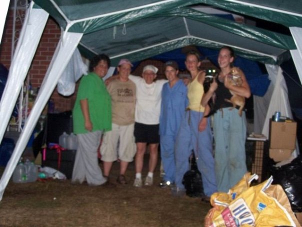 At its rural evacuation property in Tylertown, Mississippi — purchased just months before the hurricane — HSLA transformed the modest grounds into Camp Katrina, an emergency relief center that became a beacon of hope for displaced animals and a makeshift campground for volunteers. Scores of national charities and animal control agencies also converged at the site to lend a hand. In difficult conditions – with no electricity and in the sweltering heat – Camp Katrina provided veterinary care, coordinated nationwide pet transports, reunited families, distributed pet food and supplies, and provided long-term sanctuary care for animals who never found homes.