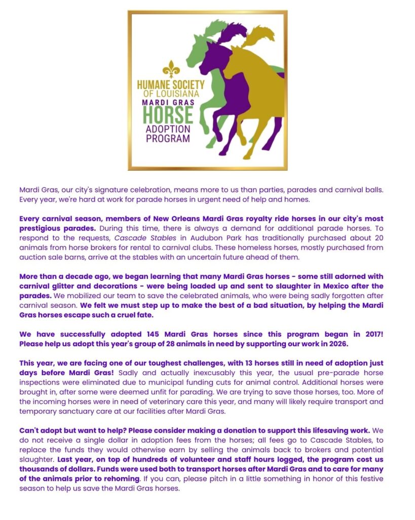 MARDI GRAS HORSE ADOPTION PROGRAM